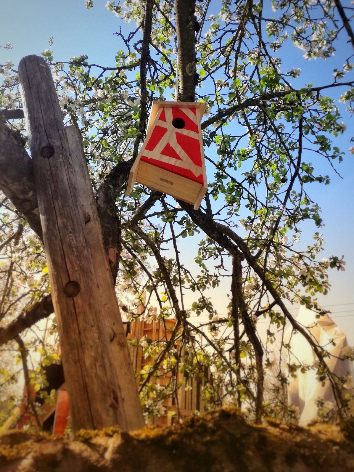 das Haus war schnell und einfach zusammengebaut. Mein Sohn hat sich gefreut, weil sein Akkuschrauber endlich mal wieder zum Einsatz kam. Beim Bemalen des Hauses war er dann wieder weniger begeistert, es schlummert also wohl kein Künstler in ihm. Aufgehängt wurde es dann im Apfelbaum und nun wartet das Häuschen nur noch auf seine ersten Mieter. Bei einem vorgefertigten Haus nimmt das Projekt nicht viel Zeit in Anspruch. Auch ist es wirklich kinderleicht, ähnlich wie IKEA-Möbel zusammenzuschrauben. Vermutlich ist es etwas befriedigender, wenn man das Haus komplett allein macht, auch hat man dann mehr Gestaltungsmöglichkeiten. Allerdings braucht es da natürlich mehr handwerkliches Geschick, mit dem sich bedauerlicherweise nicht jeder brüsten kann.