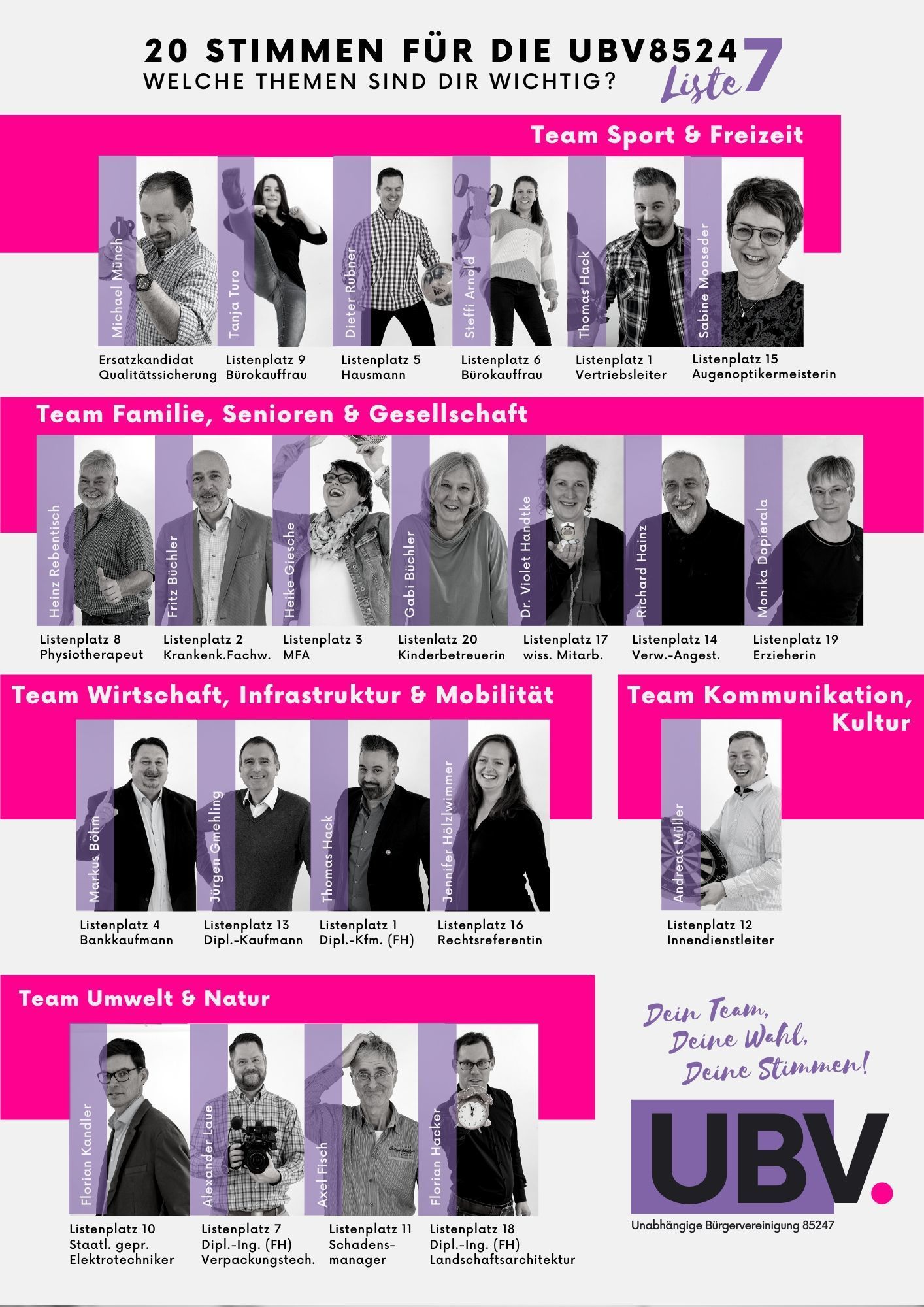Dein Team, Deine Stimmen, Deine Wahl! 20 Stimmen für die UBV85247 Liste 7 und 1 Stimme für unseren Bürgermeisterkandidat Thomas Hack.